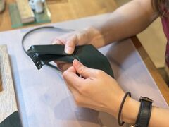 マルチケースSを作りました。出来上がったものはまるで商品かと思うほど完成度が高く、大変満足しています。素材はイタリアの伝統的なナチュラルレザーで、たくさんのきれいな色合いから選べるのが魅力的でした。デザインも良く、上質さを感じました。講師の方も気さくで質問しやすく、終始和やかな雰囲気の中で製作を楽しむことができました。会場もおしゃれで、蔵前の雰囲気も感じられる特別な体験になりました。参加者の年齢層も幅広く、どなたでも楽しめるワークショップだと思います。