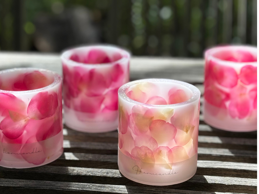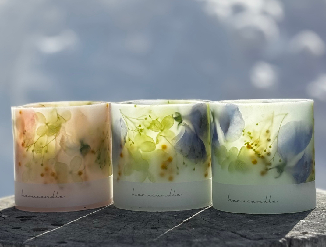 側面にお好きなお花を閉じ込めて作るランタン型のキャンドルです