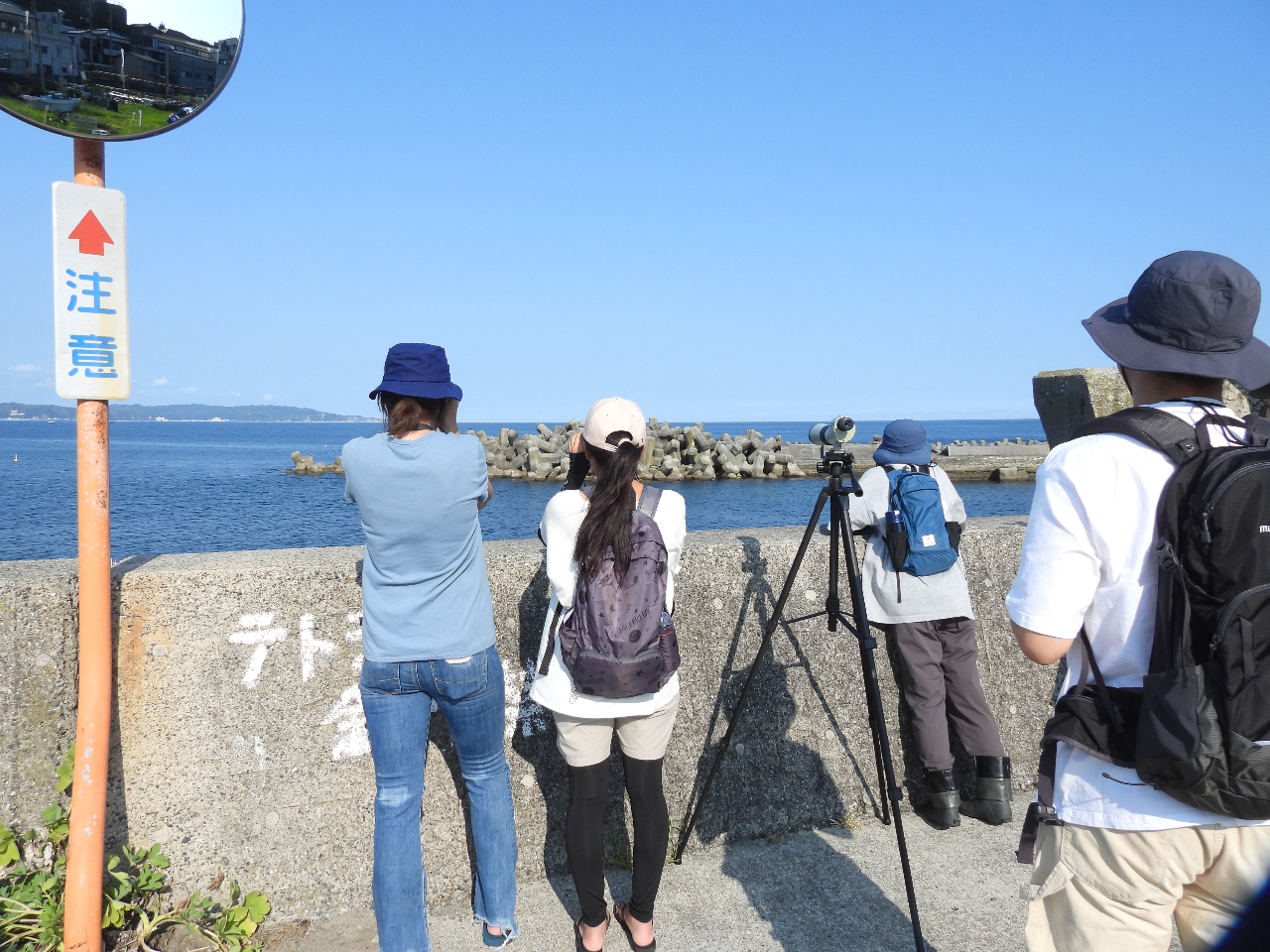 観察できる野鳥・・・ウミネコ、イソヒヨドリ、キアシシギ、チュウシャクシギ、イソシギミサゴ、ハヤブサなど。11月頃からは、北国からカンムリカイツブリ、アカエリカイツブリ、ユリカモメ、オオセグロカモメ、ウミアイサなども渡って来ますよ!