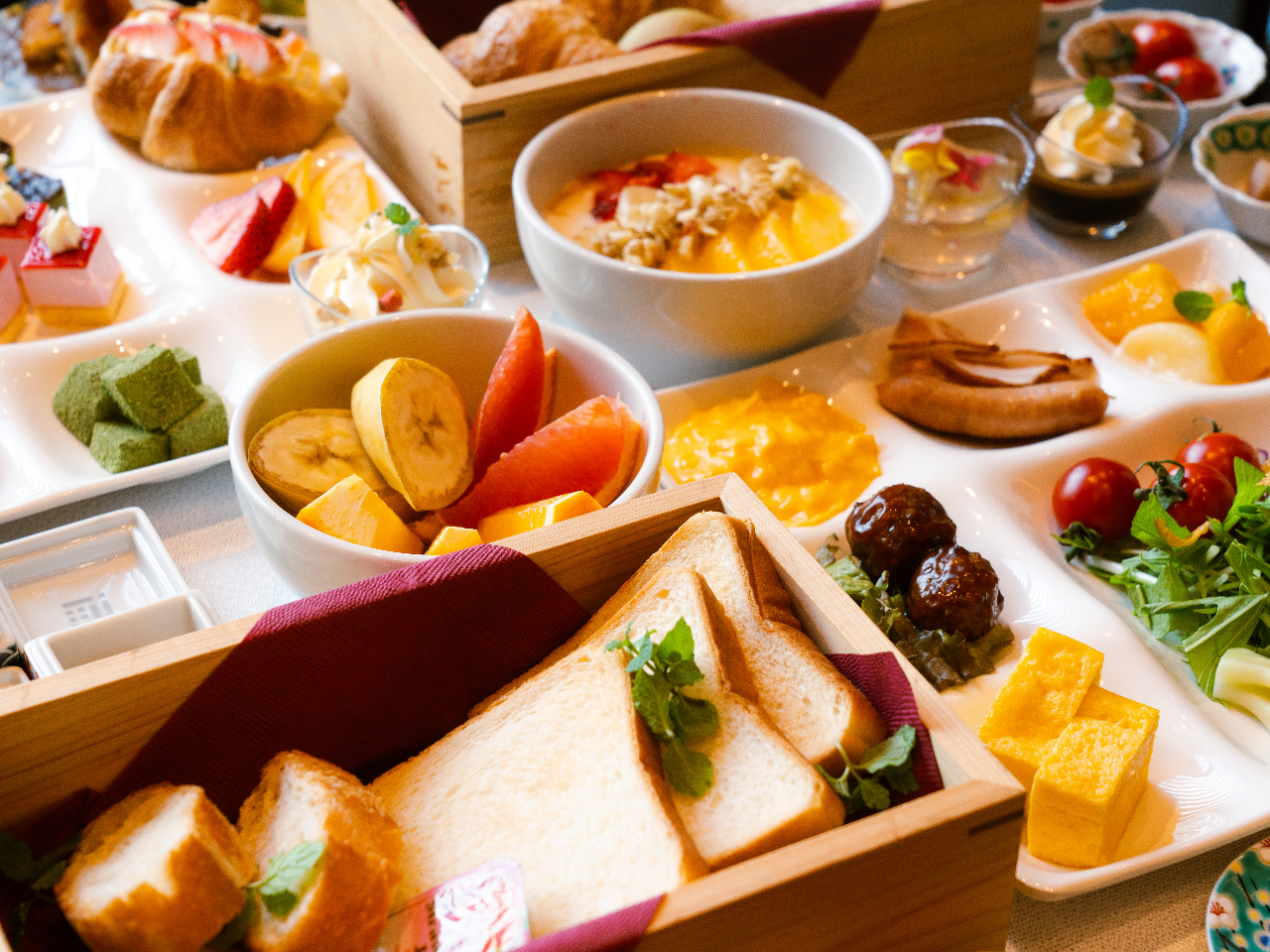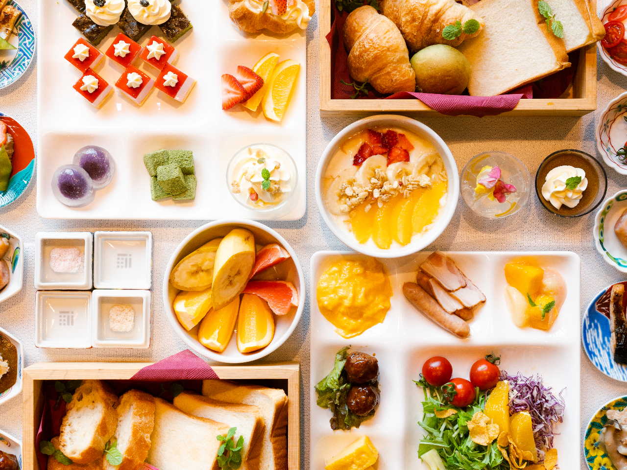 和洋食の豊富なメニューと、九谷焼の豆皿を多数ご用意。お皿選びから始まる、心踊る特別ご朝食を