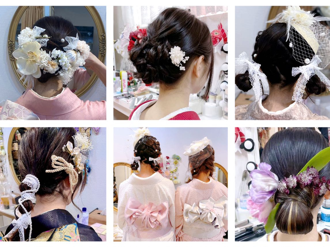 | 料金に含まれるもの | 着物レンタル(着物、裏地、足袋、帯、ハンドバッグ、下駄、プロの着付け師の着付け料金セット)、簡単なヘアセット、アクセサリー、無料荷物預かりサービス | 1予約あたりの予約可能人数 | 1人〜10人 |