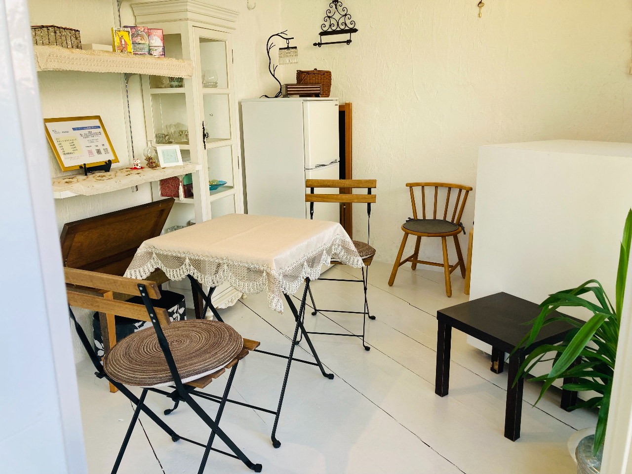 アトリエの様子です♪緑がたくさんの中庭が見える店内で、癒されながら制作できます。個室貸し切りですのでゆっくり楽しむことができます。