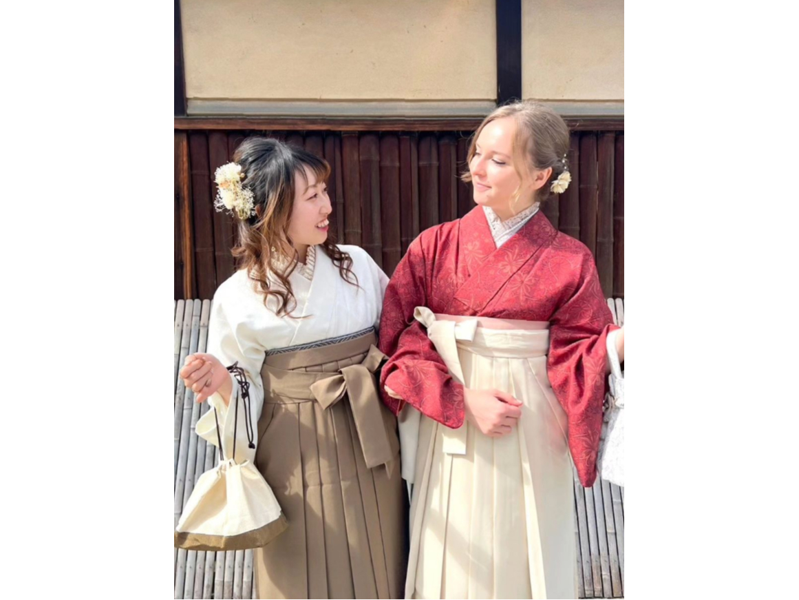 【袴プラン(ヘアセット込み)】八坂神社から徒歩約5分!レトロやレースなど様々な着物とコーディネート可能♪《女性・カップルにおすすめ》\じゃらん新登場/