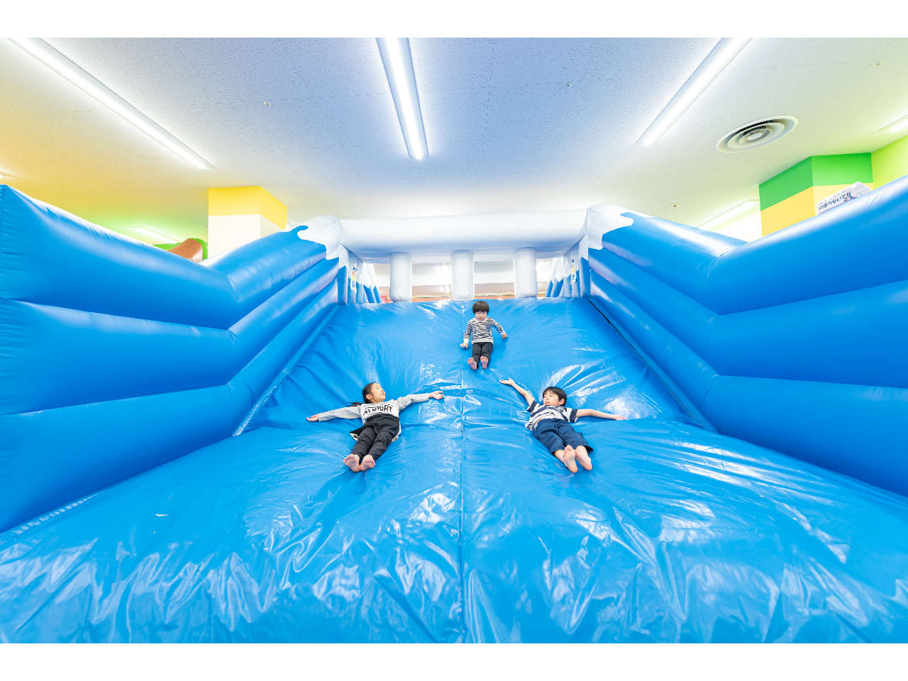 大人も一緒に遊べるふわふわ滑り台など、たくさんの遊具であそび放題!