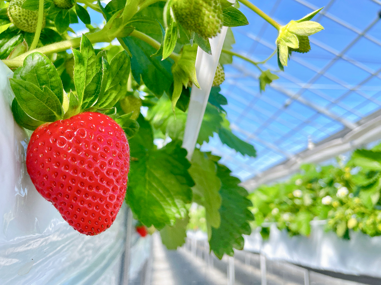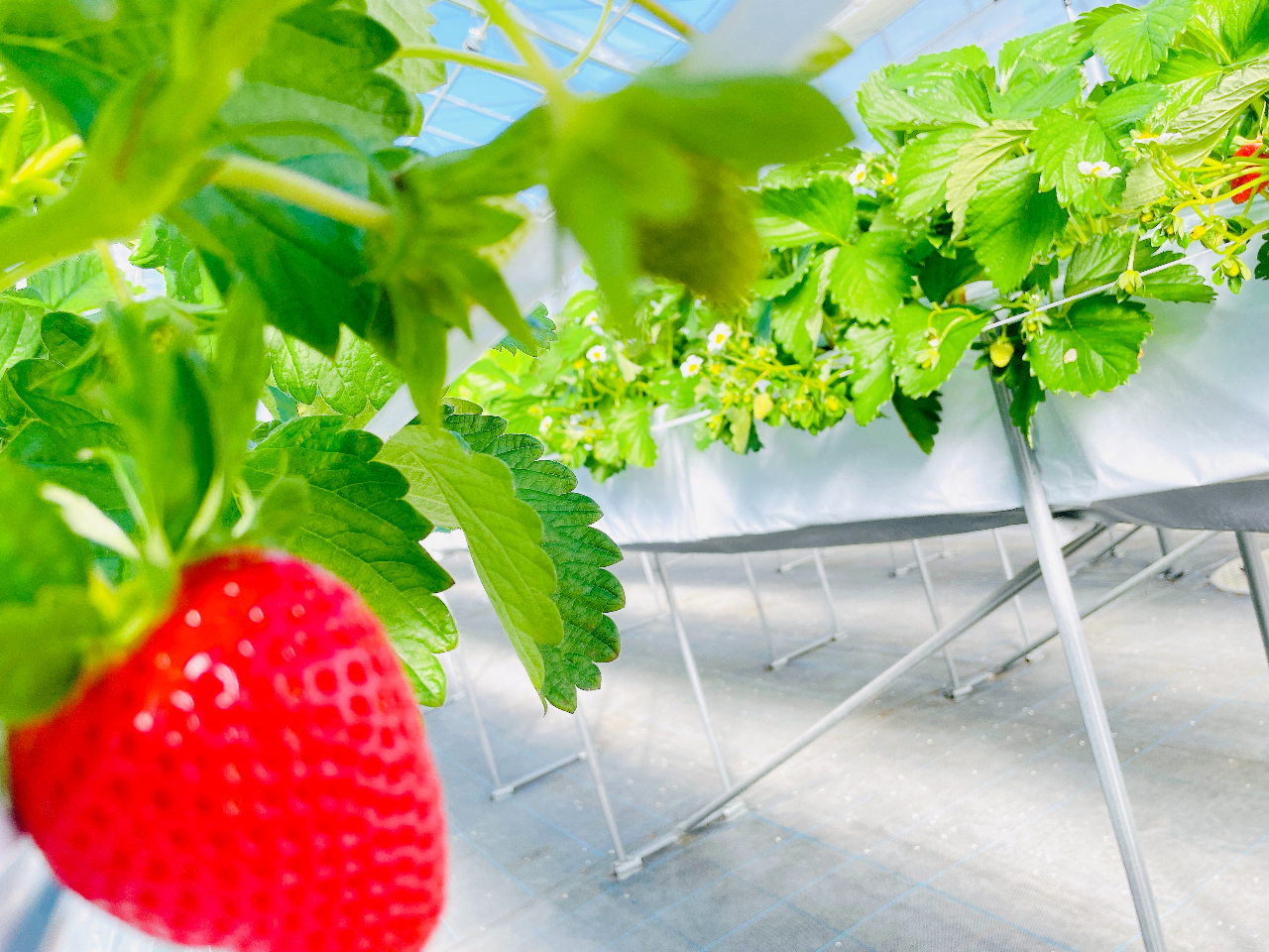 解放感ある広々としたハウスのなかで、ご家族・恋人・ご友人とイチゴを通して、甘酸っぱい笑顔あふれる思い出を作ってみませんか?