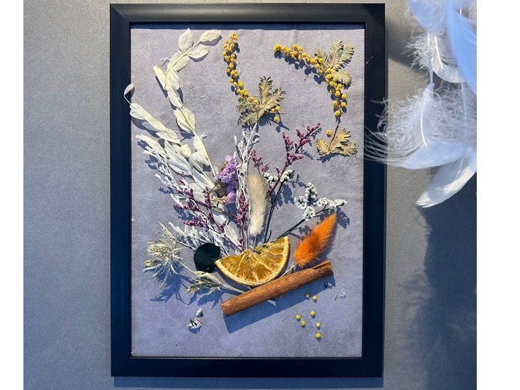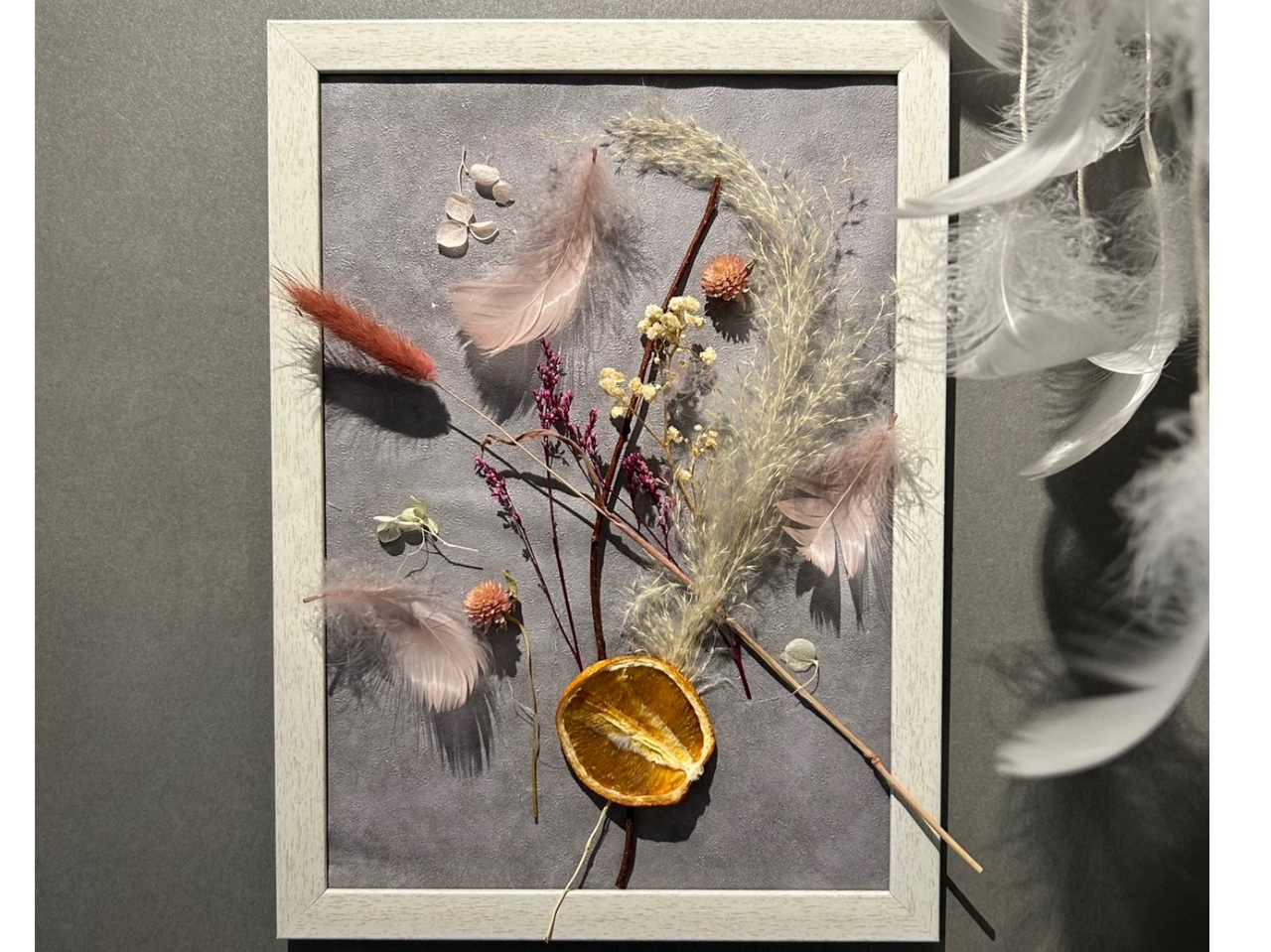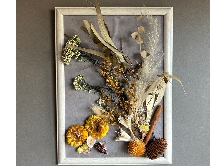 A4サイズのフレームにドライフラワーを使用して華やかに彩るアート作品となっております♪