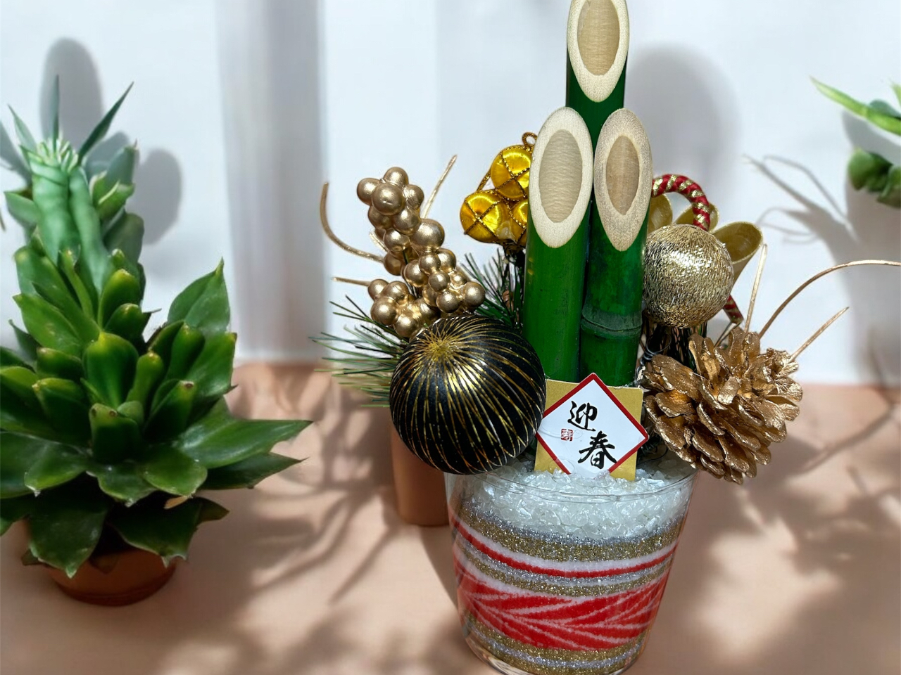 砂の上部は、アーティフィシャルフラワー(造花)や観葉植物などで飾り、