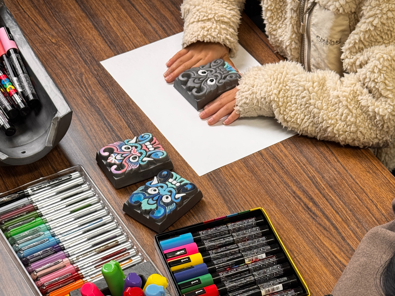 お子様にもおすすめ。ご家族皆さんでオリジナル鬼瓦を描きませんか?