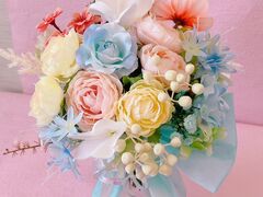 ブーケは造花のお花で作るので、少し失敗しても簡単に修正ができ、家に持ち帰る際も持ち帰りやすかったです。