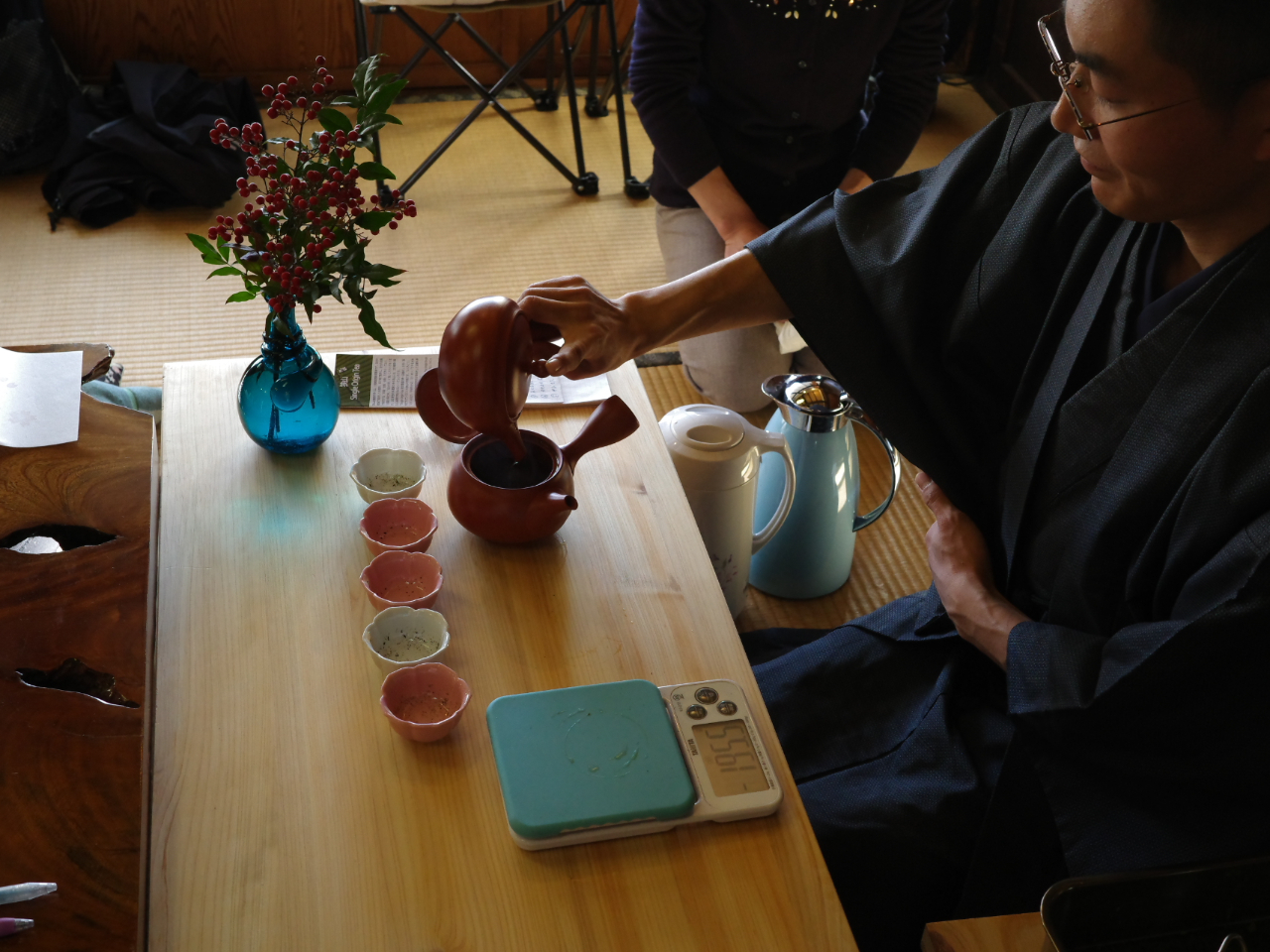 江戸時代末期に建てられたという歴史ある古民家で、闘茶(お茶を飲み比べて品種を当てる遊び)を体験しました。