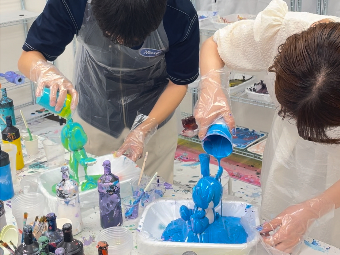 万が一ペイントが飛び跳ねる可能性があるため、汚れても大丈夫な服装でお越しください。