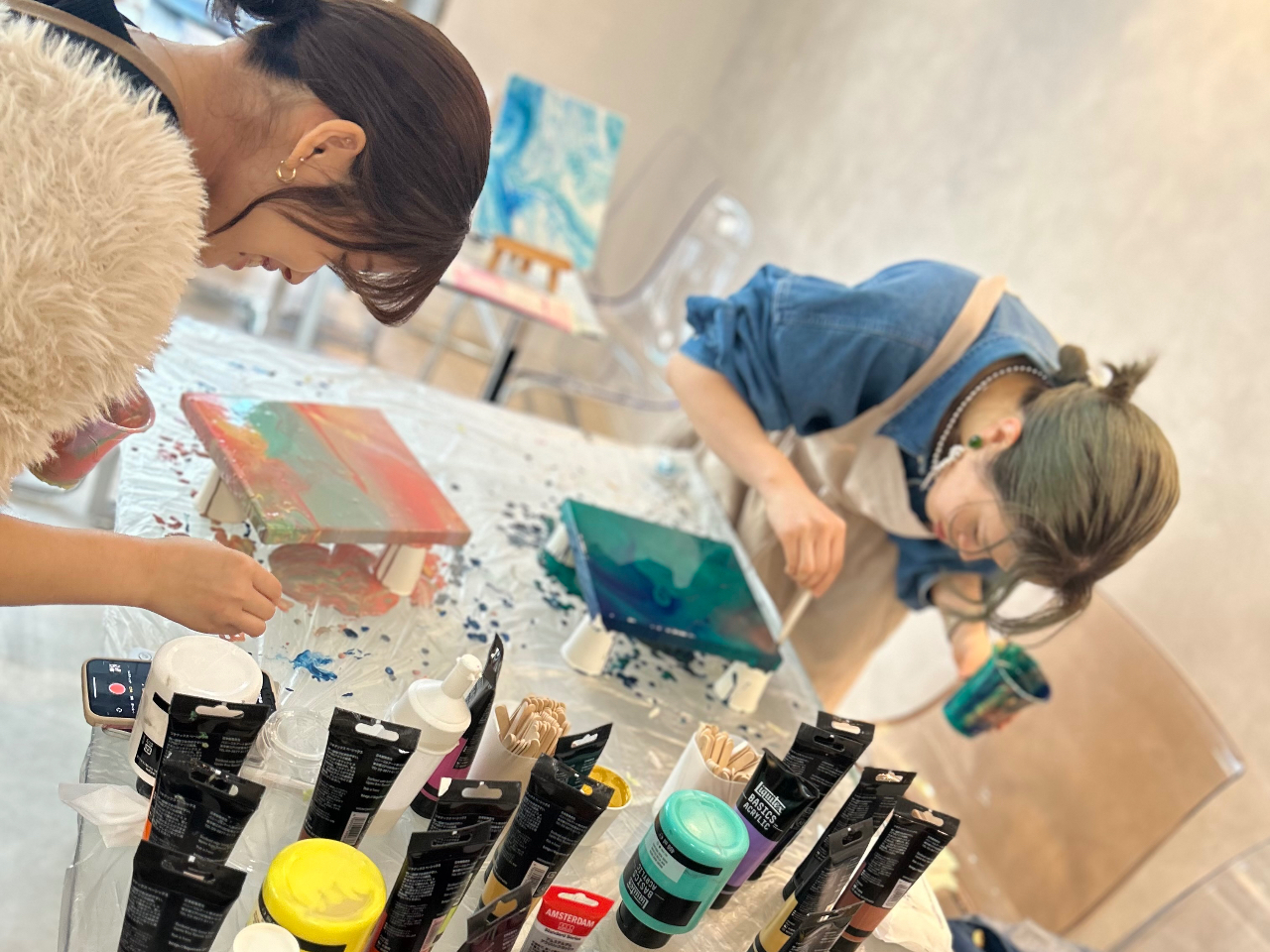 【大阪/雨でも安心駅近!・谷町六丁目駅徒歩1分!たらし込みアート 】ポーリングアート/キャンバス
