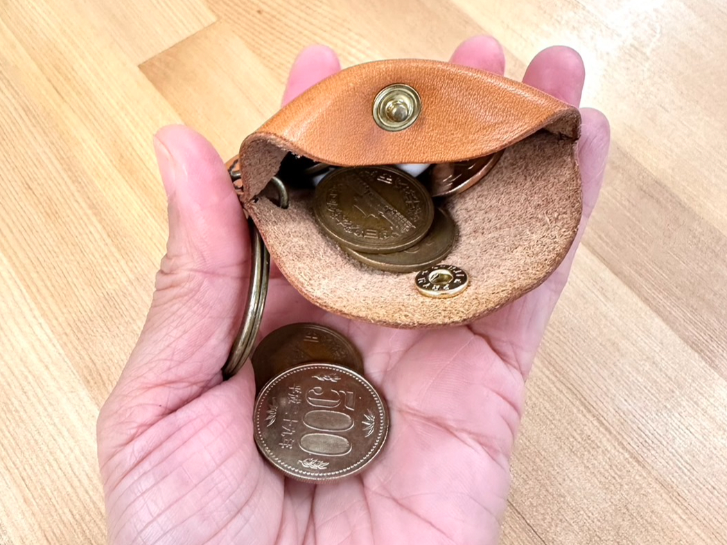 飴や小銭などが入る小さな小物入れです。鍵をつけても持ち運べます♪