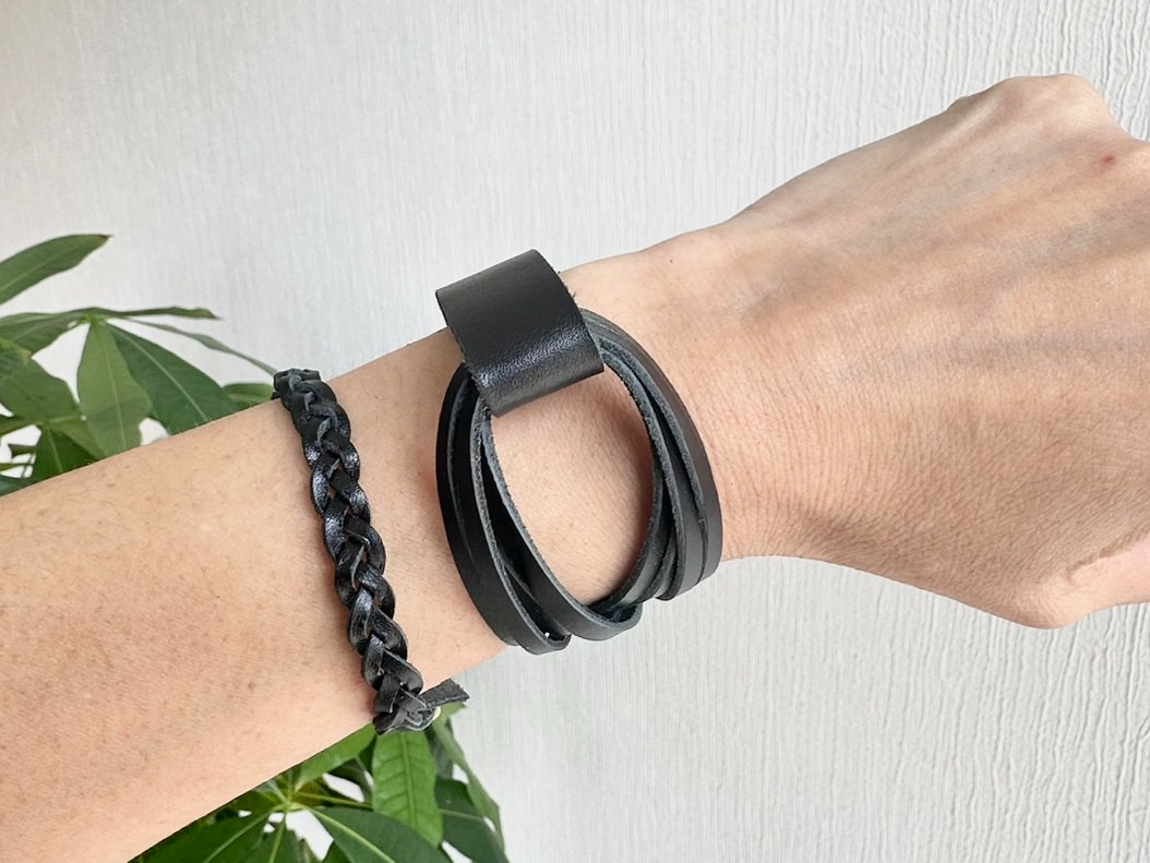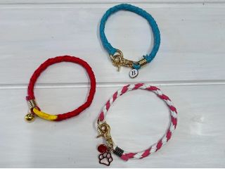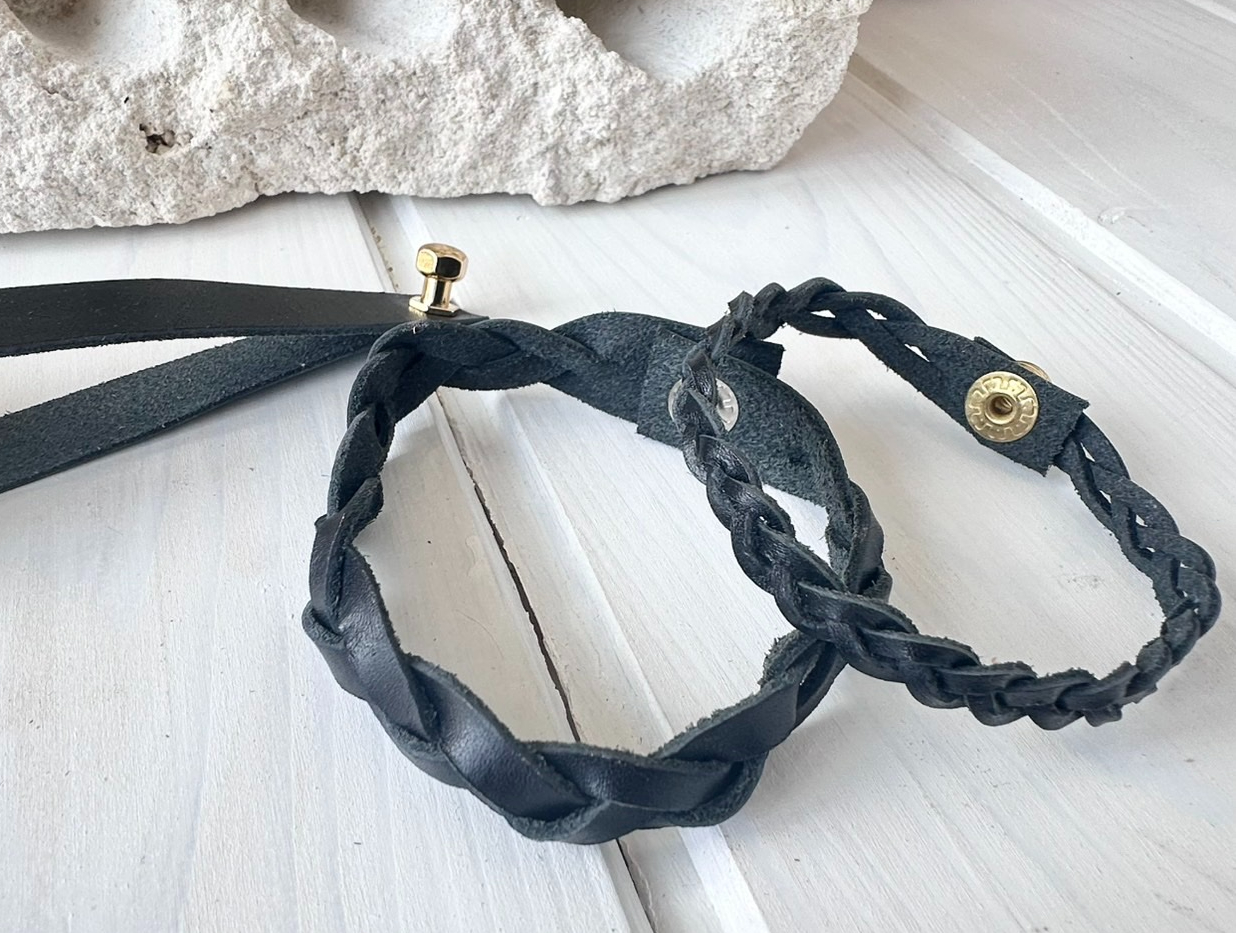 【本革四つ編みアクセサリー】☆ペット同伴可☆ブレスレットやペットの首輪にも♪