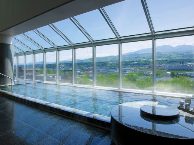 蔵王連峰の雄大な姿を臨む展望大浴場。