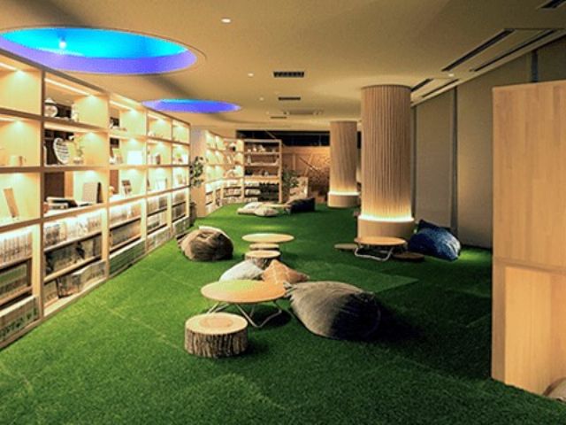 暖炉やコワーキングライブラリーにキッズエリア、無料珈琲、サウナガーデン、雑誌やコミック。