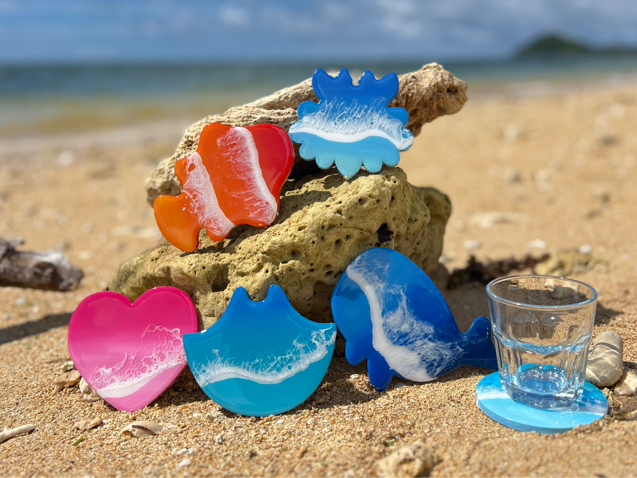 【石垣島】レジンアート!コースター作り体験!【30分】石垣島鍾乳洞にて開催!マンタ・シーサーなど種類豊富!【初心者の方・ファミリー・カップル・女性大歓迎!】当日予約OK!移転セール中!!