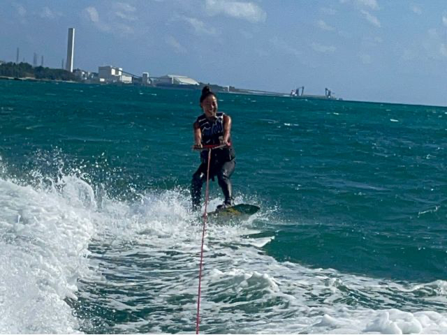 【金武町 伊芸海浜公園】海の上を爽快に★ウェイクボード体験★未経験者プラン★説明込30分(2603-06)