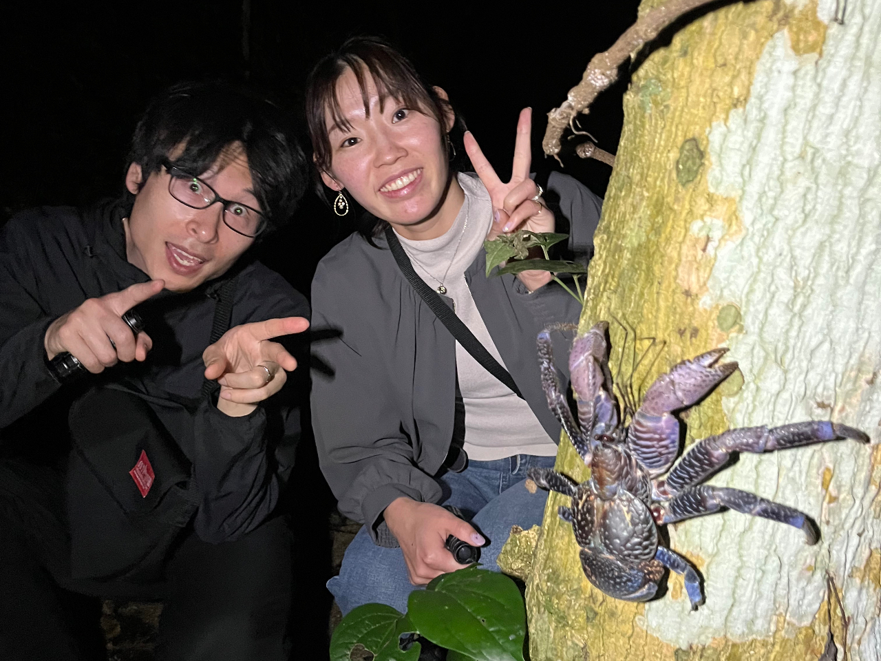 こわいけど見たい、触れたいけど逃げたい!巨大ヤシガニとのドキドキ遭遇タイムは大盛り上がり!