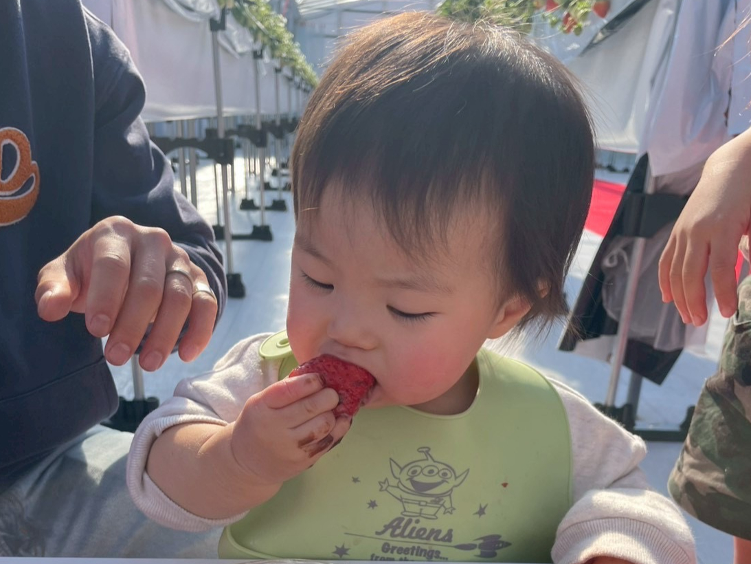 娘家族と初めて伺いました。入り口で靴のカバーをするので中はとても清潔です。お兄さんが常にコロコロをしてくれていました。いちごの種類も沢山あり、わかりやすく名前が書いてあるので全種類食べることができました。スタッフの皆さんが、とても感じが良く「たくさん食べてくださいね」と笑顔で言ってもらえました。孫も「美味しい」を連発して何個も食べていました。お手洗いが受付のとこにしかないので、2号棟にも欲しいです。でもリピートしたいと思います。