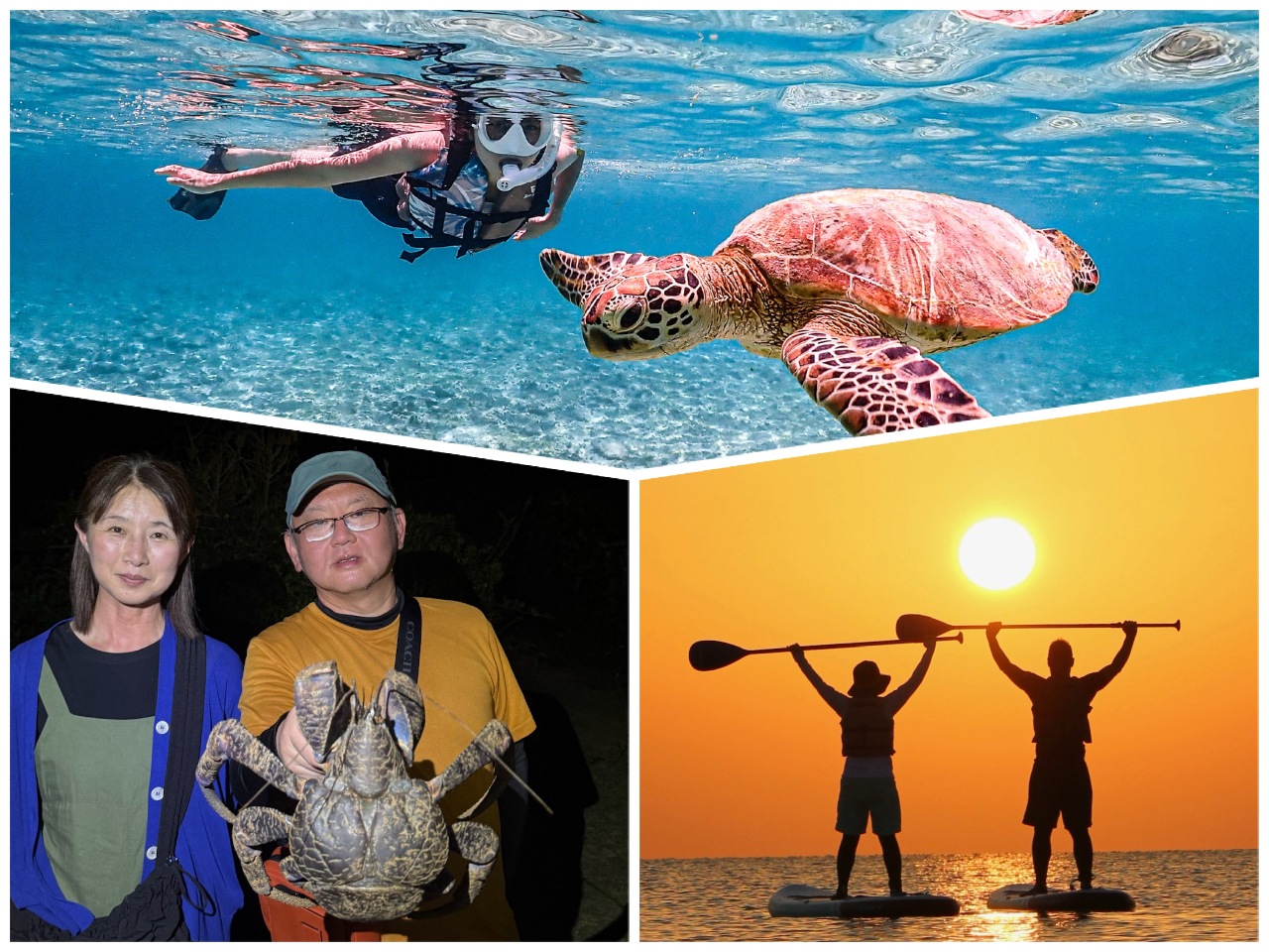 【沖縄・宮古島】【丸っと1日!】ウミガメシュノーケリング&癒しのサンセットSUP&南国ジャングルナイトツアー!!