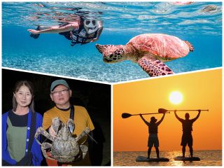 宮古島の海でウミガメと一緒に泳ぐ感動体験と絶景ビーチSUPのセットプラン!!