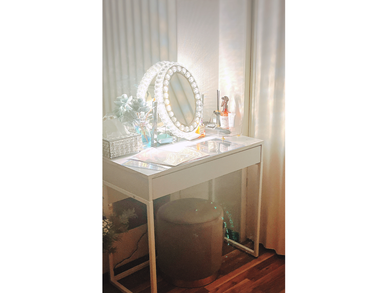 D身支度 ドレッサーブースにてヒト幹細胞ミスト(化粧水)でお肌を整えてください。