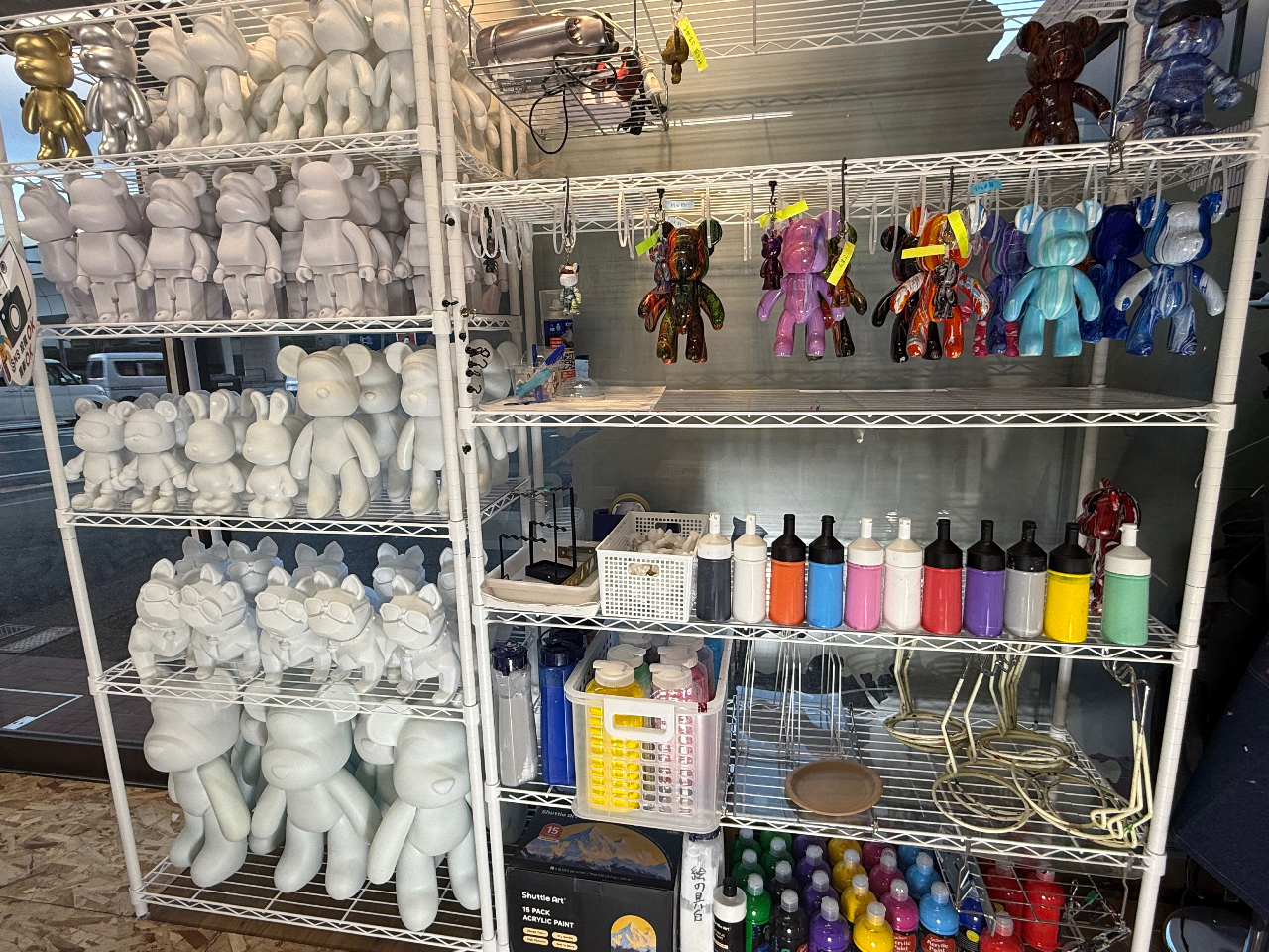 「ベアアート」は、クマの人形に好きな色の絵具3色を垂らして、 世界に1つだけの模様を楽しむ、年齢層関係なく誰でも気軽に楽しめるアートです!