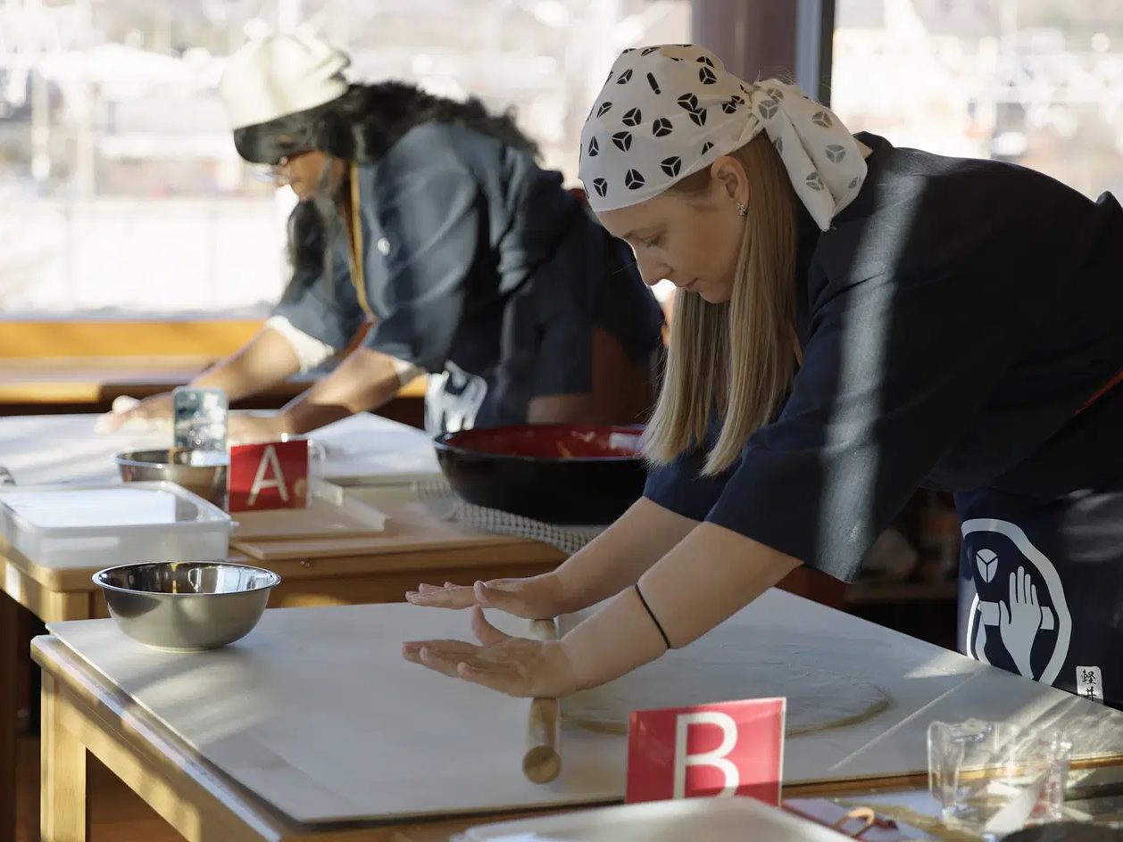 【そば打ち体験/軽井沢】\お買い物ついでに、楽しく美味しく日本の食文化を体験!/そば粉を練って、伸ばし、切るところまで、職人が丁寧に教えます♪