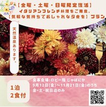 9月12日(金)〜11月21日(金)のうち、金・土・日・祝日泊限定