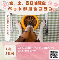 【ペットと泊まれる】お部屋でペットと一緒にお食事。夕・朝食を客室にお届け(2食付)