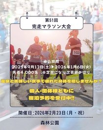 投稿時期:2025年10月9日森林公園にて、2026年2月23日(月・祝)開催の「完走マラソン大会」のエントリーが始まっています。