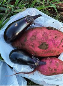 先日、ヘリテイジファームではさつまいもと秋ナスの収穫が行われました。