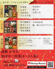 年末年始のお供に、ぜひヘリテイジリゾートのおせちをお召し上がりください。