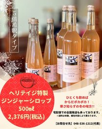 そんな時期に、ホテルヘリテイジ特製「ジンジャーシロップ」はいかがでしょうか。