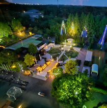 夜になると、ガーデンチャペルではイルミネーションが幻想的に輝き、非日常のひとときを演出します。