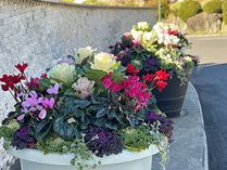 エントランス近くに飾られた、ピンクや赤のシクラメンが冬空の下でひときわ輝いており、お客様からは「心が温まる」とのお声を多数いただきました。