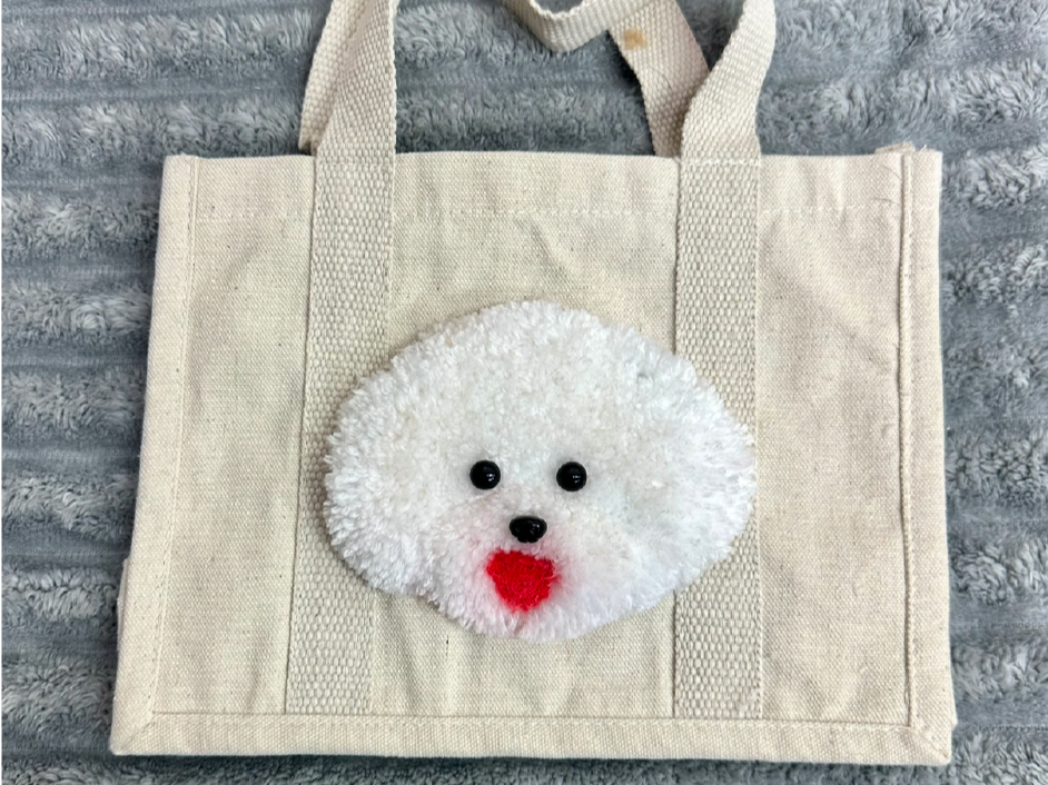タフティングで作ったペットの人形をバッグにつけていつでもおとも♪