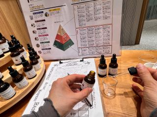 フランス産ラベンダーやダマスクローズ、イランイランなど40種類以上の天然精油を使用。調香体験と専用のキャンドル容器がセットになったお得なプランです。