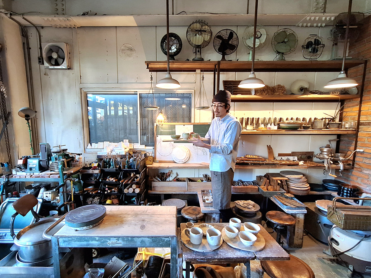 こだわりのヴィンテージ家具に囲まれた雰囲気たっぷりの工房で作る〜手ろくろ〜