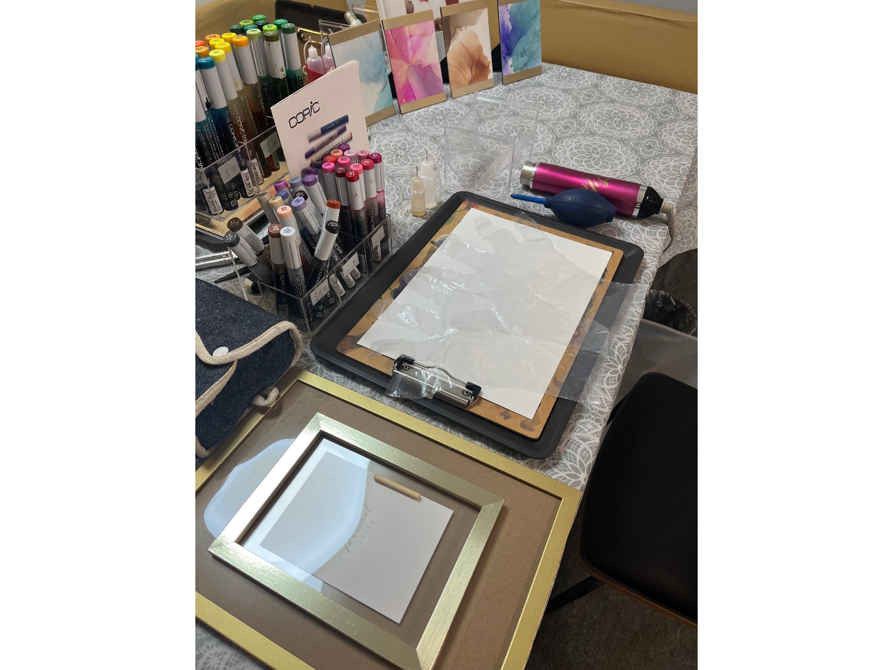 アートを描いたあとはフレームに入れて持って帰れる体験です◎