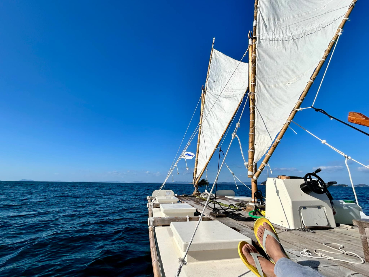 帆走カヌーに乗って秘境のようなビーチへ行きましょう。