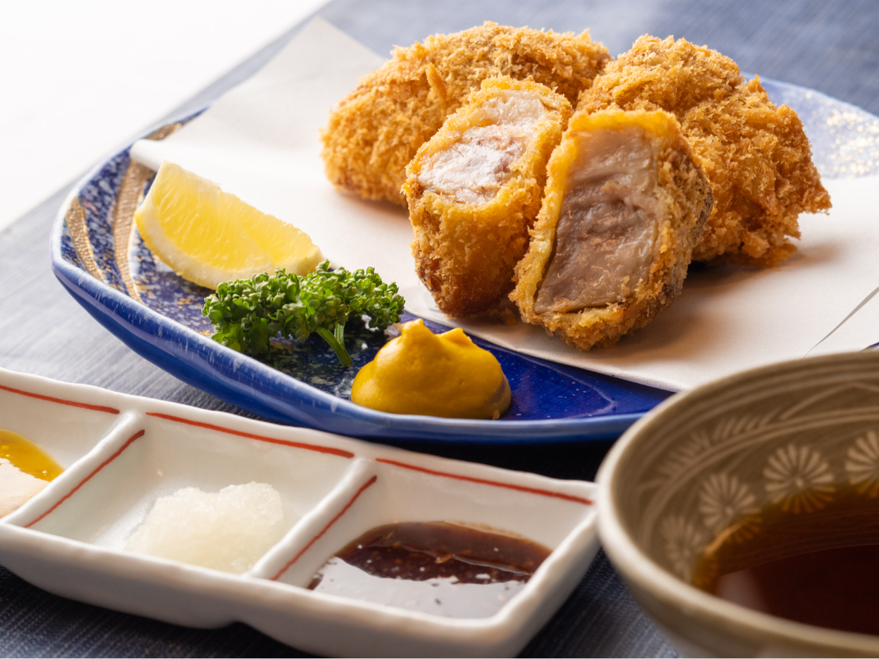 六白亭独自開発!箸で切れるほどトロトロの黒豚角煮をカツに仕上げ、外はカリッと中はほどける柔らかさ。黒豚の旨味を存分に楽しめる逸品です。