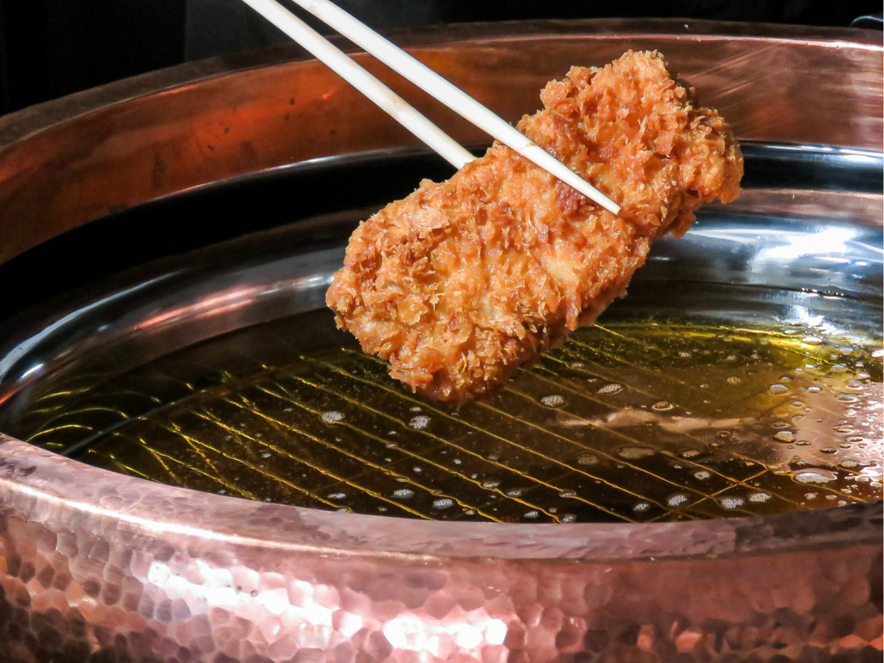 注文後に肉を切り分け、パン粉の付け方や揚げ油、温度まで職人が徹底的にこだわり、銅鍋で揚げた逸品。旨味を閉じ込め、外はサクッと中はジューシーな極上とんかつです。