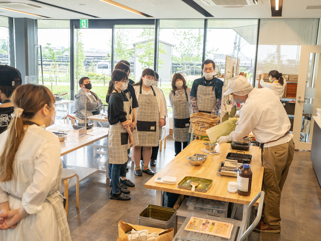 当社は平成23年1月、本社・工場が現社屋へ移転いたしました。これまでは修学旅行生向けや、創業祭の折に飴づくり体験を行っておりました。年に数度の不定期開催ではありましたが応募倍率は非常に高く、満足度も高い評価をいただいておりました。現社屋を建てる前より定期的に行いたいと社長・岩井の意向もあり、この度、10年越しに当社社屋の隣にできました「お茶と宇治のまち歴史公園 茶づな」で定期開催することと相成りました。
