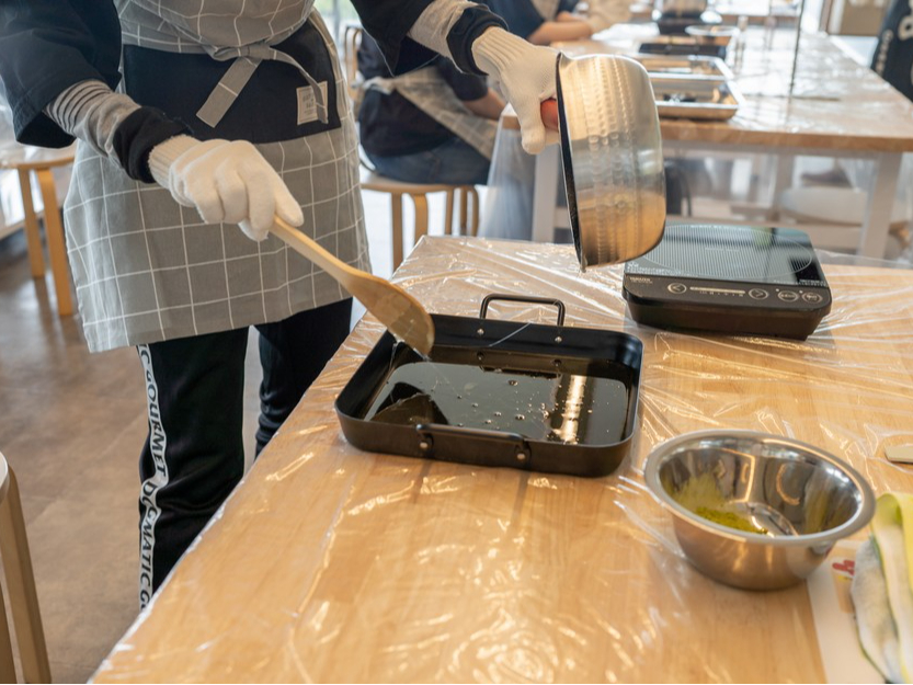 当社の体験教室は社長の岩井の拘りがあり、原料を仕込むところからはじめ、実際に高温な飴の煮炊き、鋭利なハサミを使っての成型など、お子様はもちろん、大人でも危ない体験をしていただきたい。でなければ緊張感、達成感、満足度も期待を裏切ってしまいます。