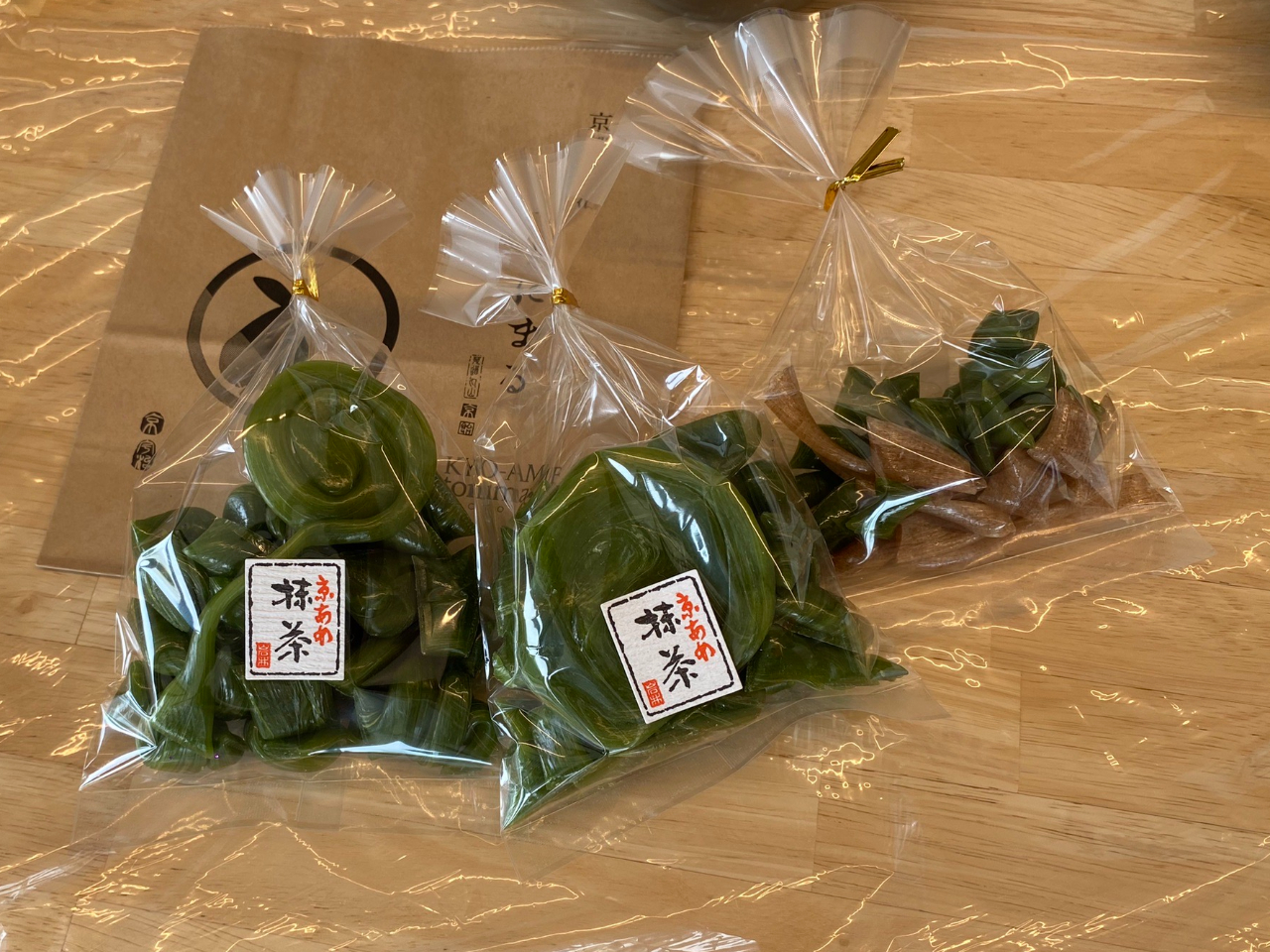 地元宇治の抹茶を使用したキャンディもしくは月毎に種類が違うキャンディの出来立てを楽しめます!飴屋ならではのひやしあめも楽しめます。