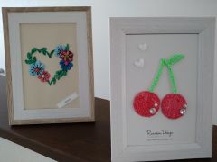 手につかない、つぶつぶ状のボールクレイ粘土でイラスト付きカードやメモクリップスタンドが作れます。