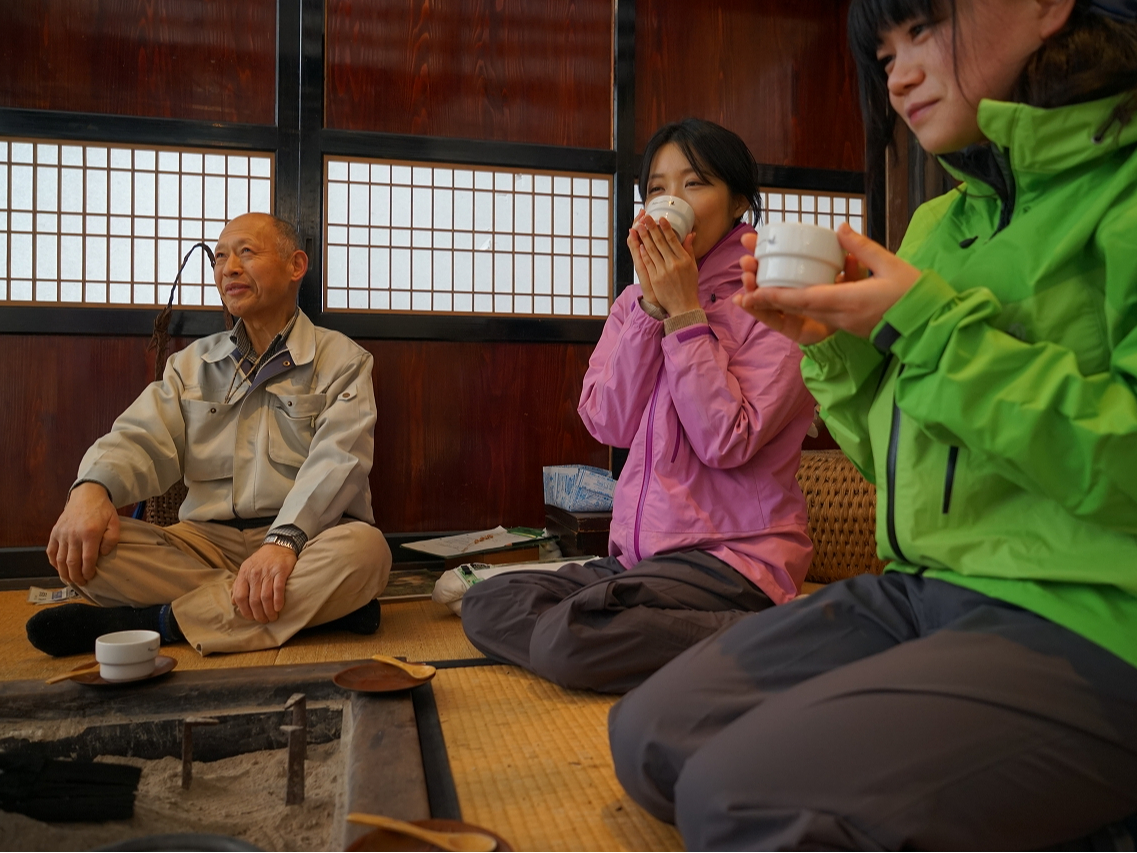 ♪散策後は“森の学校キョロロ”にて囲炉裏体験(甘酒付)