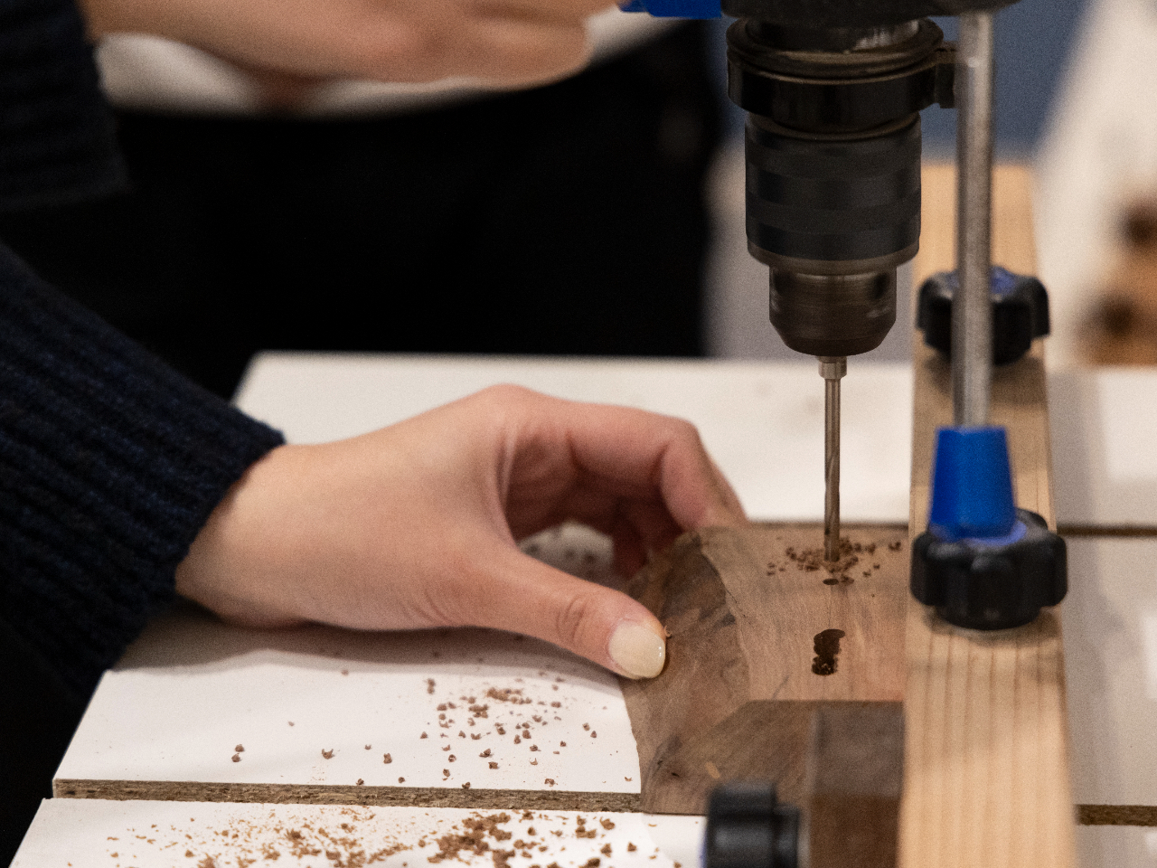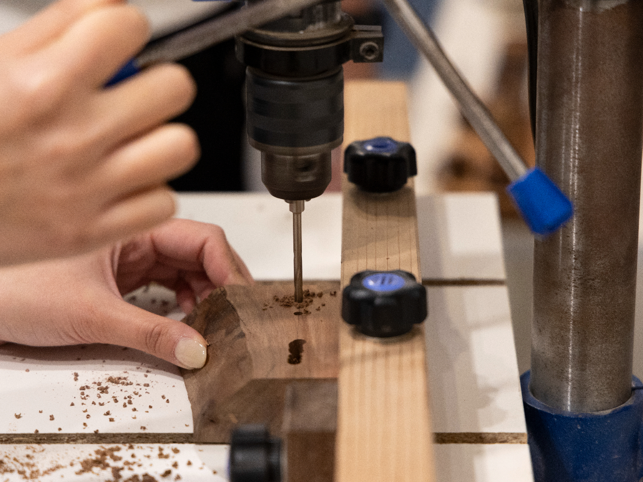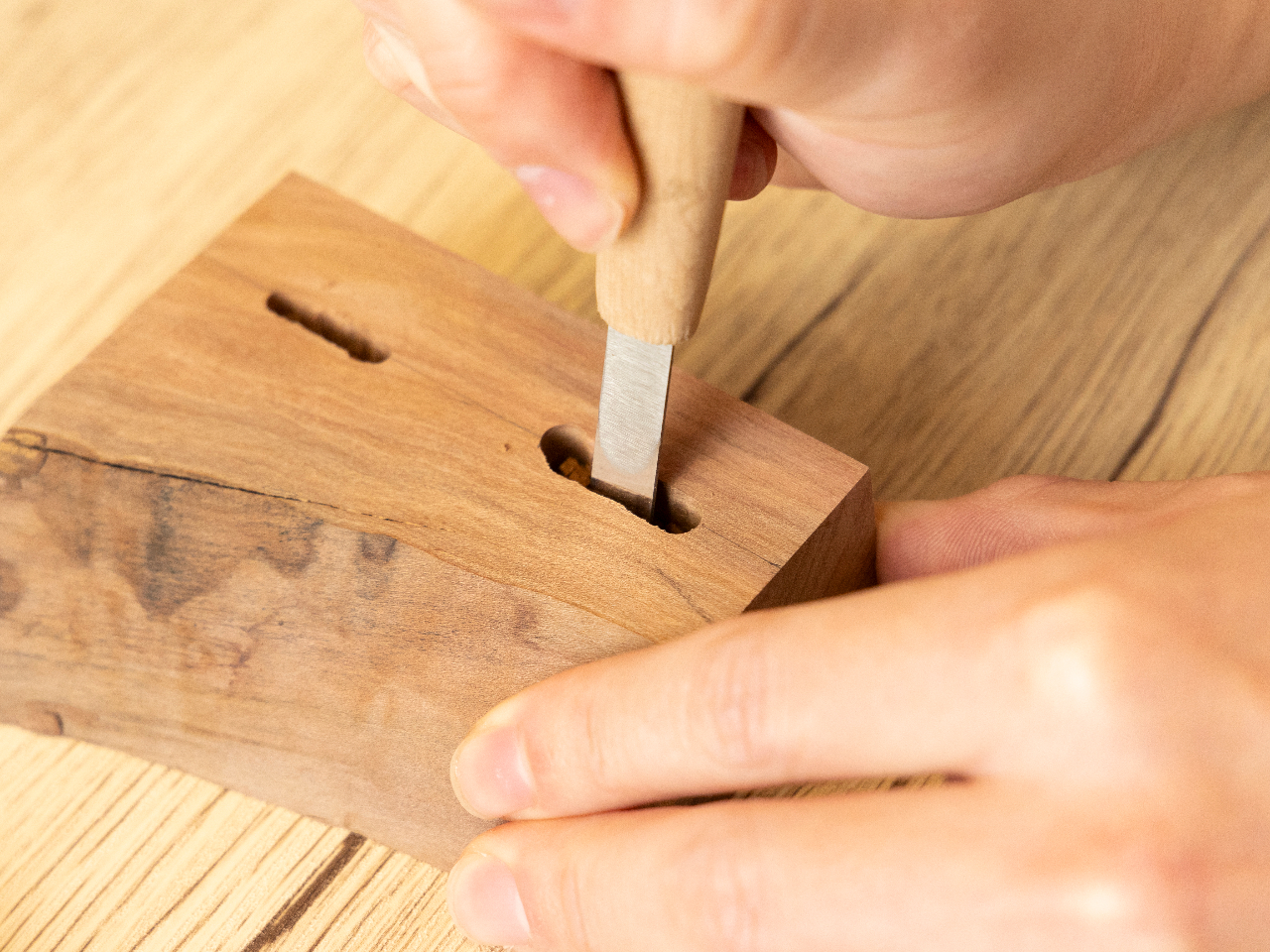 C彫刻刀できれいに削って調整Dやすりをかけてオイルを塗り完成